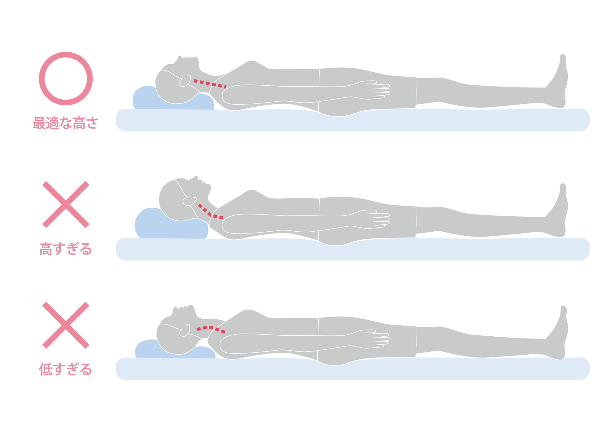 つまり枕は姿勢によって、厚みを変える必要がある。